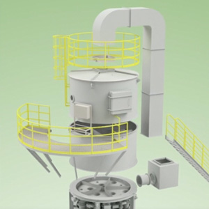 主要结构包含燃烧室、陶瓷填料床和旋转阀组等。内部陶瓷蓄热体床层,由隔板划分为多个扇形区,在阀门组控制下,各个区域,预热、冷却、吹扫,平稳切换,循环更替。占地面积小,压力波动小,高效经济,实现废气净化、余热回收。